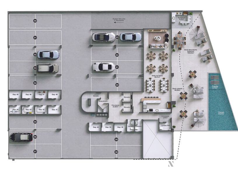 Salão de festas, Sacada, Quiosque, Piscina, Churrasqueira